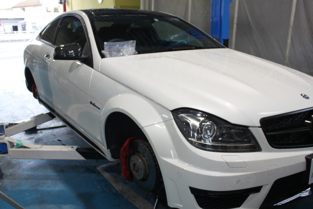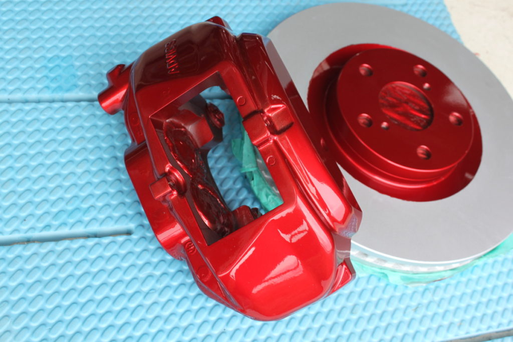 自社に展示するレクサスのキャリパーとローターを塗装…
